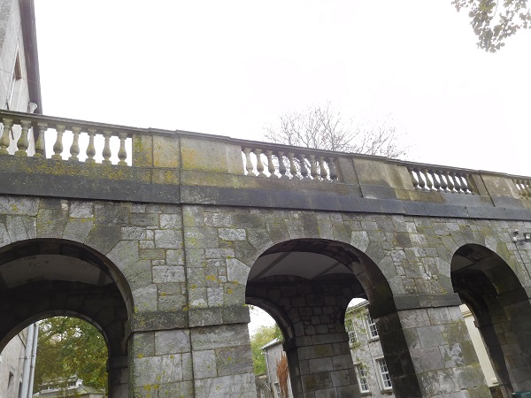After the new ones were replaced we checked every single baluster along the whole length of the arcade and all the ones that had any movement had the top joint packed tight with slate and epoxy resin which was then pointed in using a Portland stone mortar. An arcade is often confused with a colonnade. Arcades are determined by a series of columns, pillars or piers with arches that form a covered walkway underneath, which is the case here. A colonnade however is determined by a series of columns with a flat beam across the top. A classic example of a colonnade is the Parthenon in Greece.