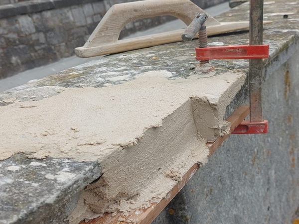 Next the repair was built up using a Portland stone repair mortar.