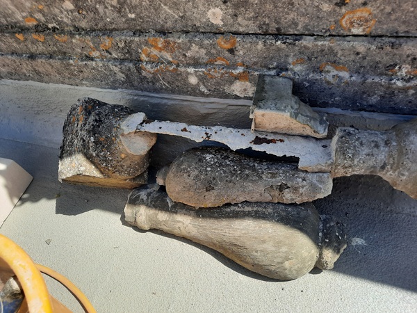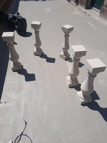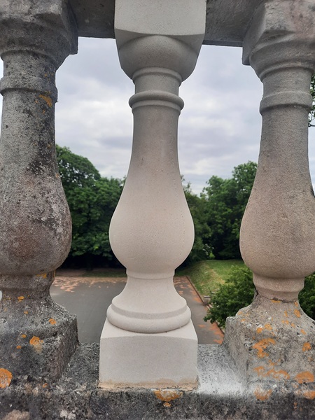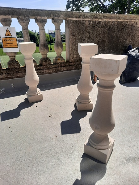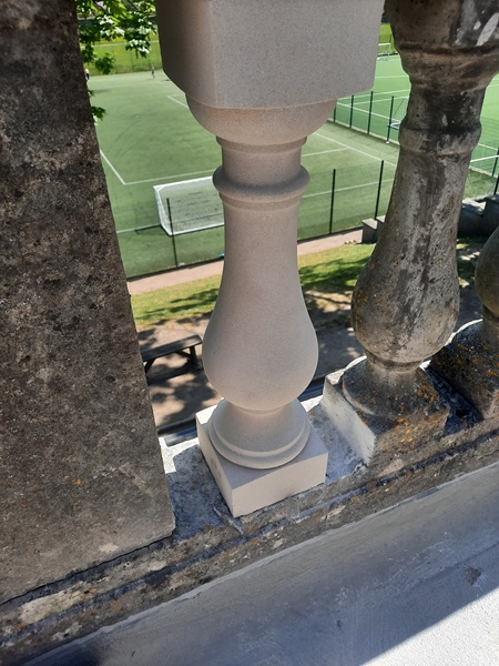 With the copings now repaired and stabilized we switched to sorting out the loose and damaged balusters. New re-constituted Portland stone balusters were sourced to replace the ones that were deemed beyond repair. It was difficult to get an exact match as the balustrading consisted of balusters that been replaced over the years with slightly different profiles, but what we got matched in pretty well. Five balusters in total had to replaced.
