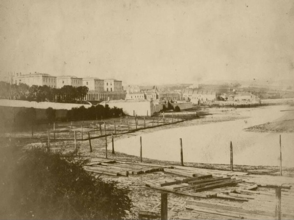The following image shows the Stoke Military Hospital long before the creek was filled in.