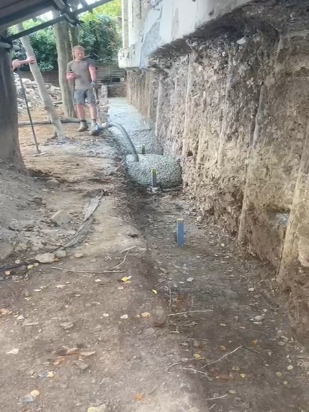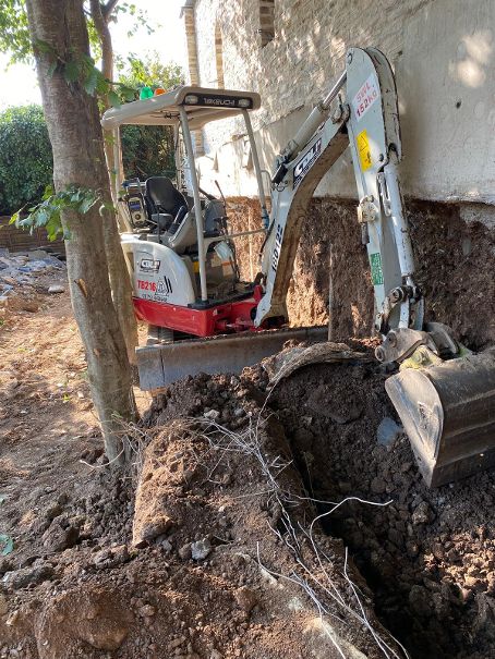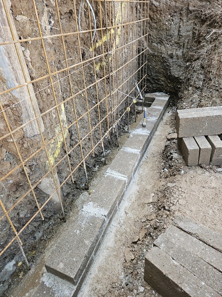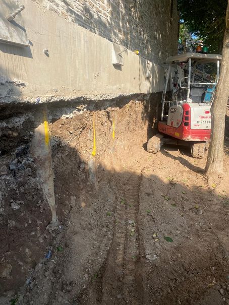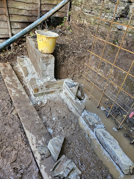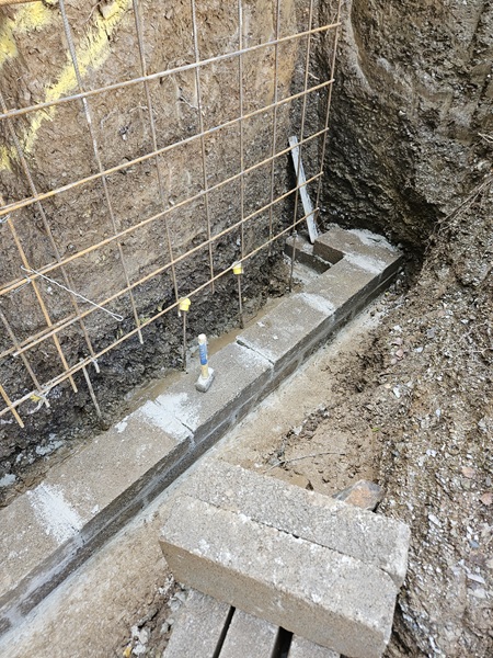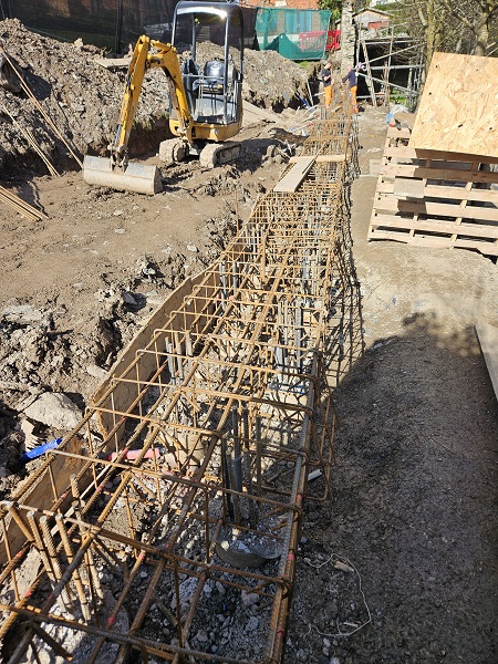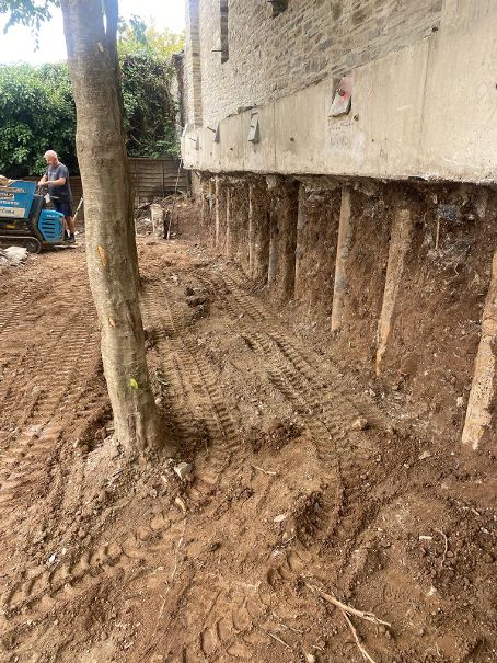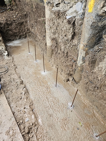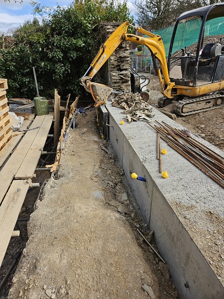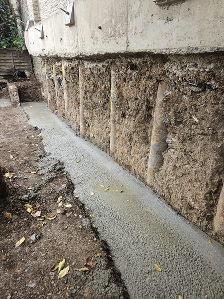 Once all the pilings had been exposed, a trench was excavated for a new concrete strip foundation.