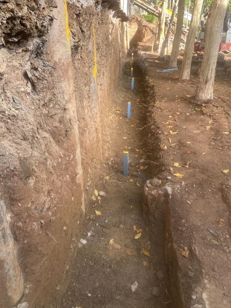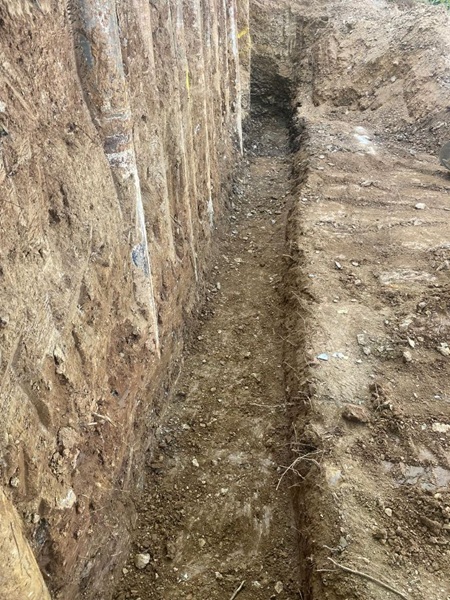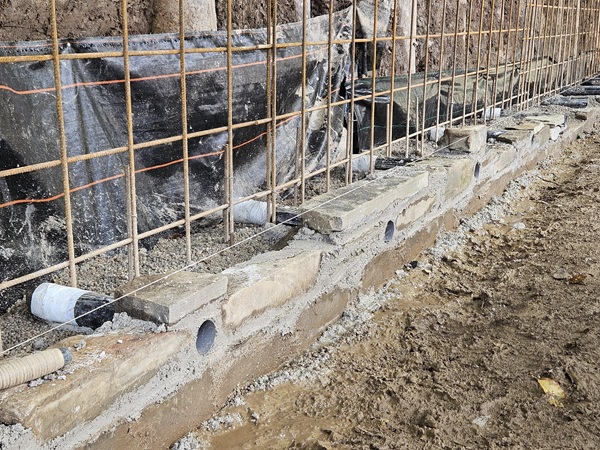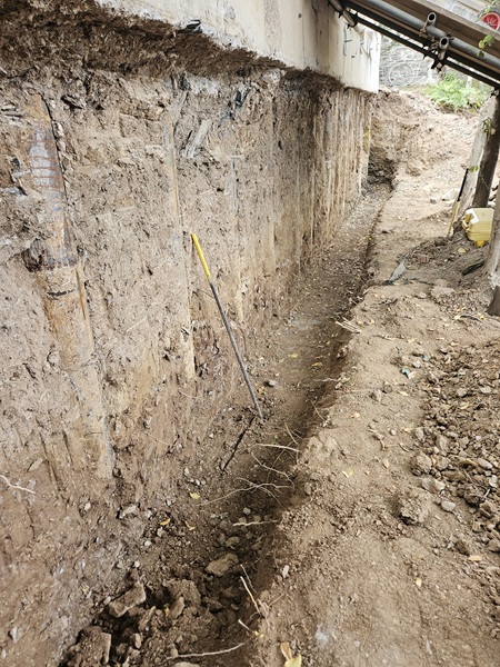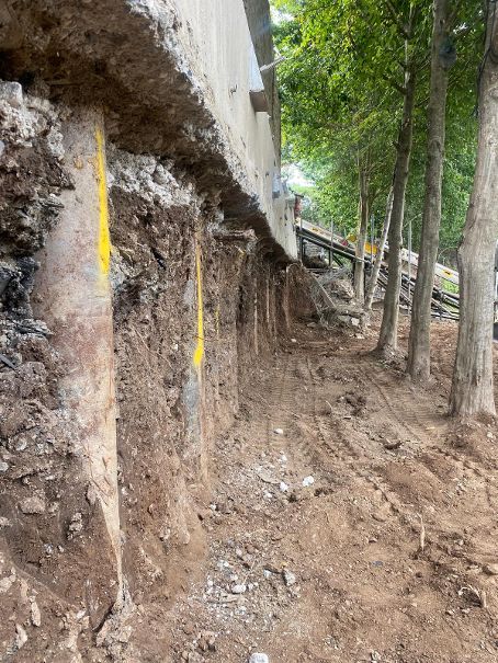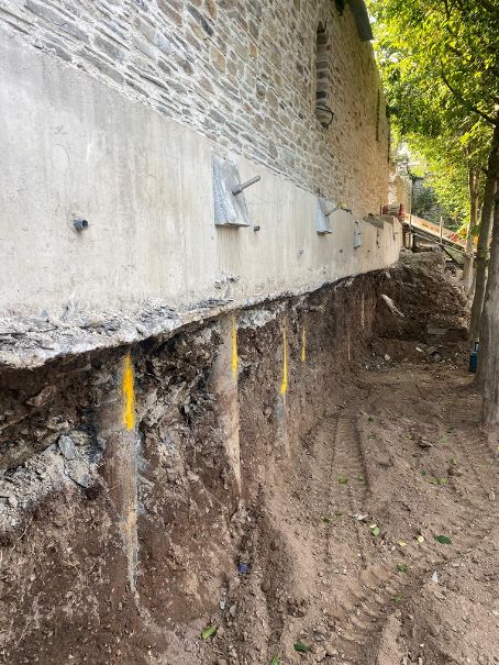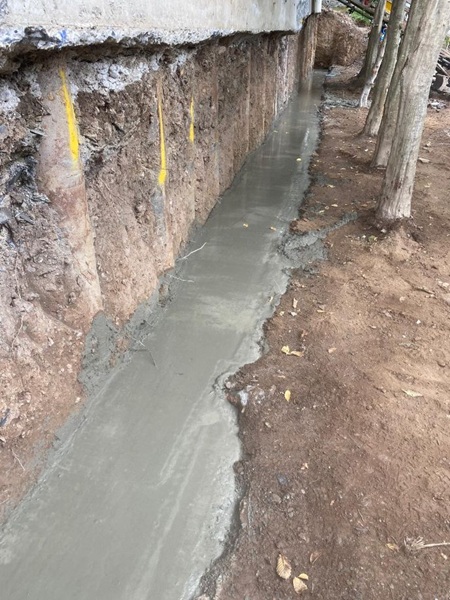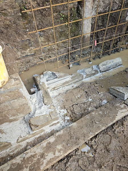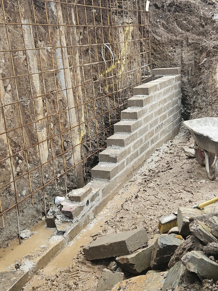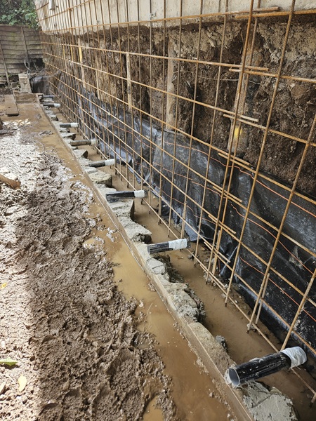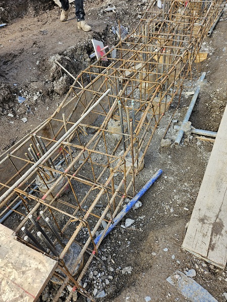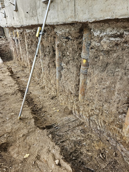 Once all the pilings had been exposed, a trench was excavated for a new concrete strip foundation.