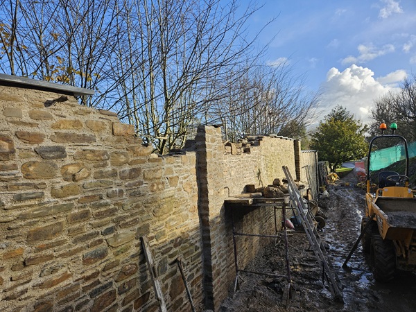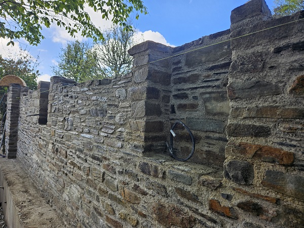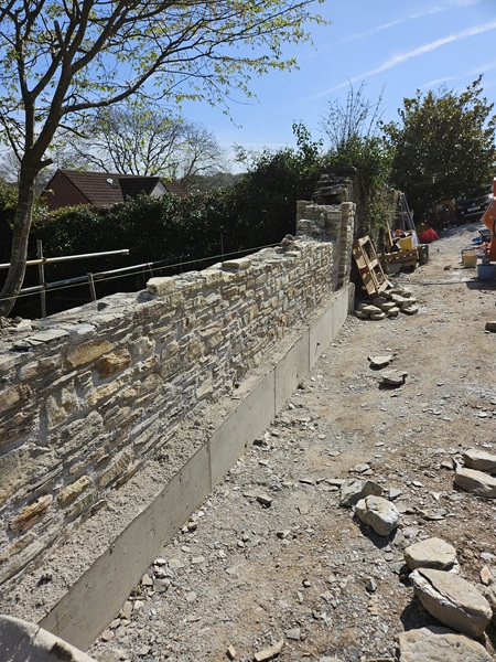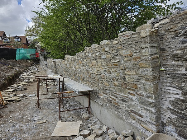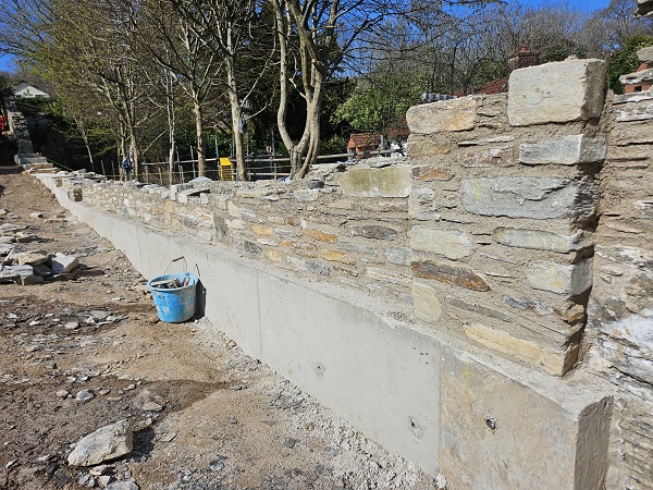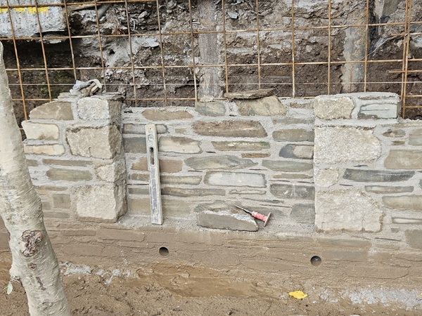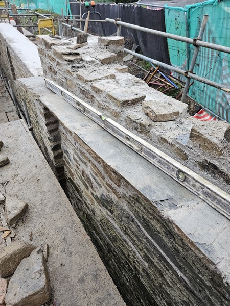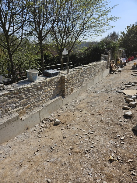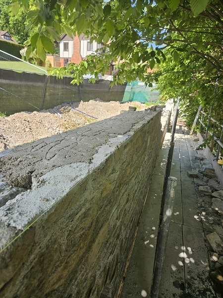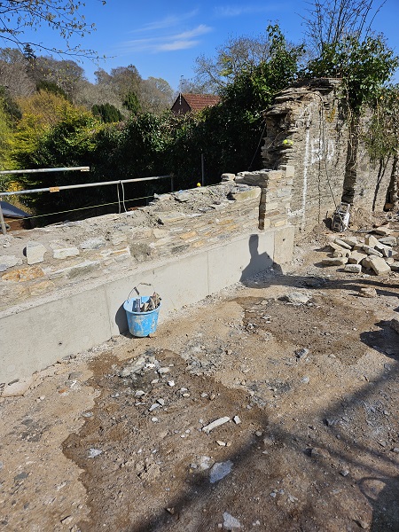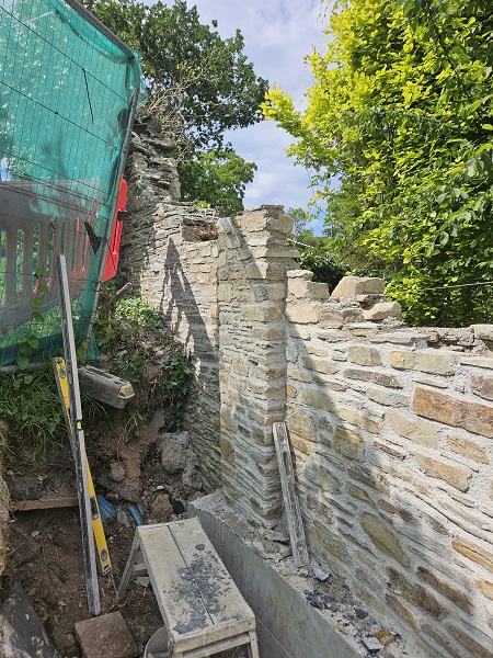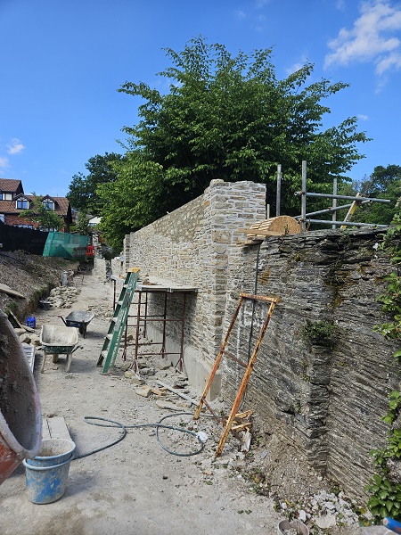 With both ends of the wall now going up, we continued building the new stonework up along its full length.