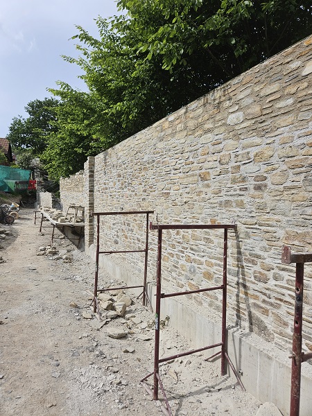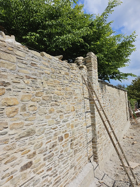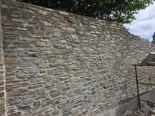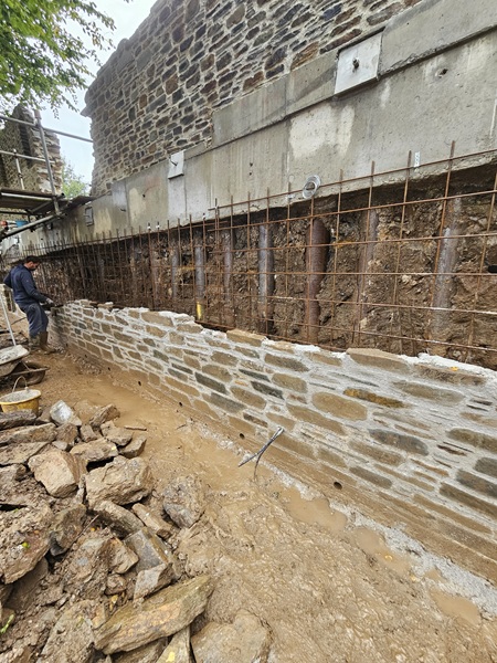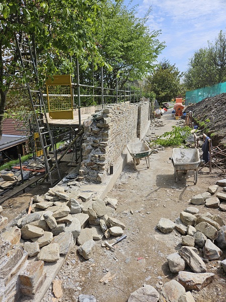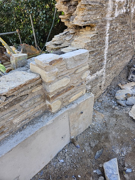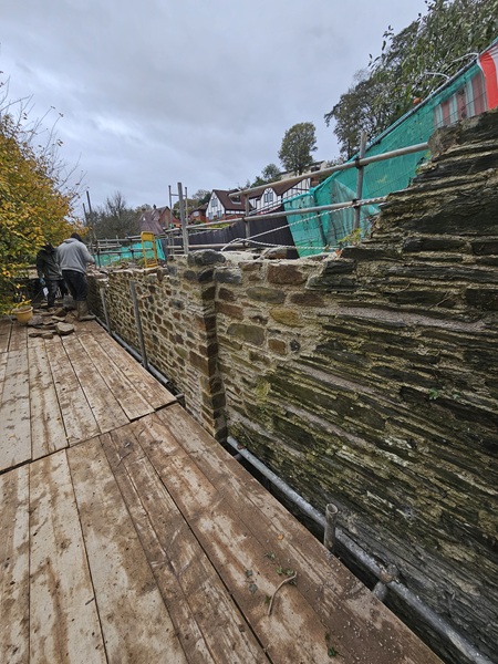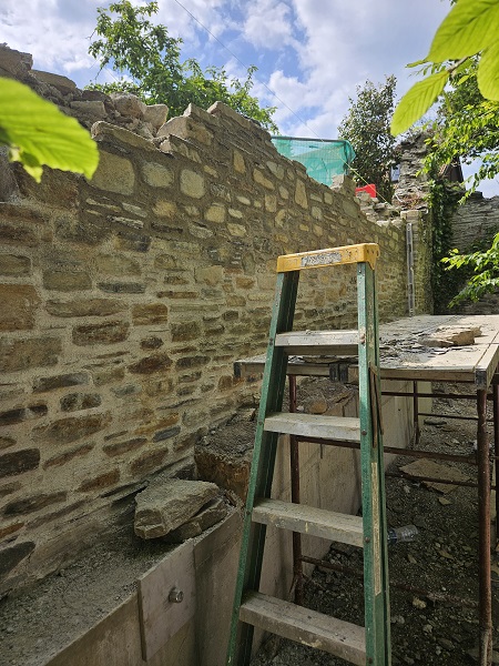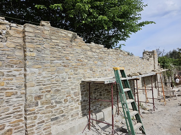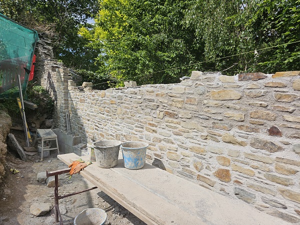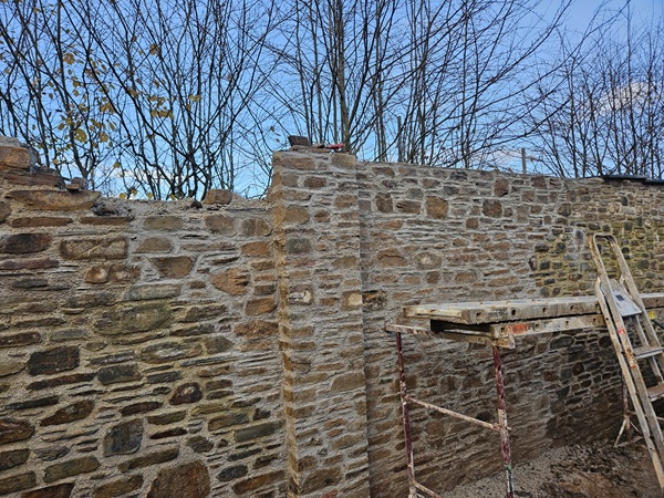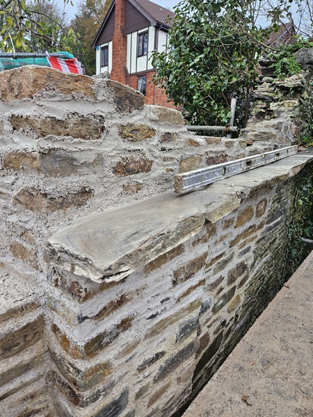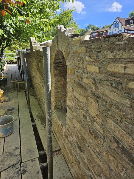 With both ends of the wall now going up, we continued building the new stonework up along its full length.