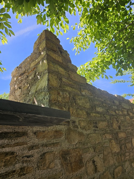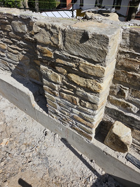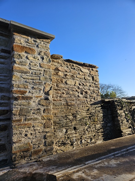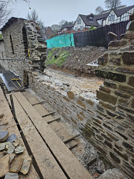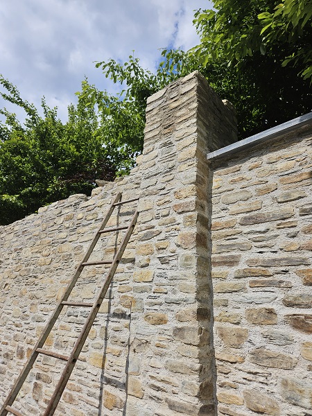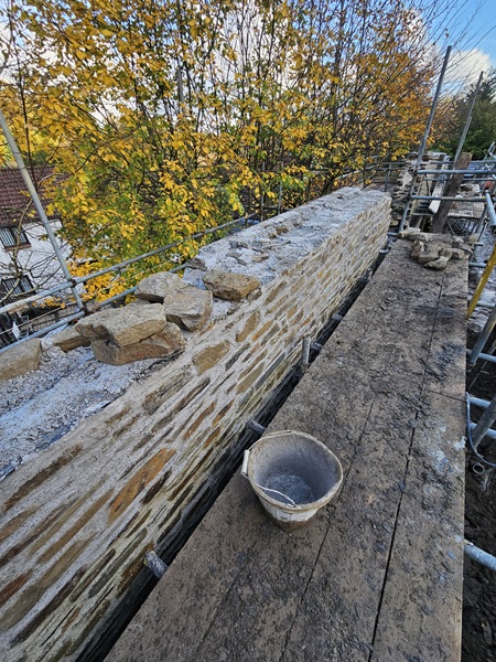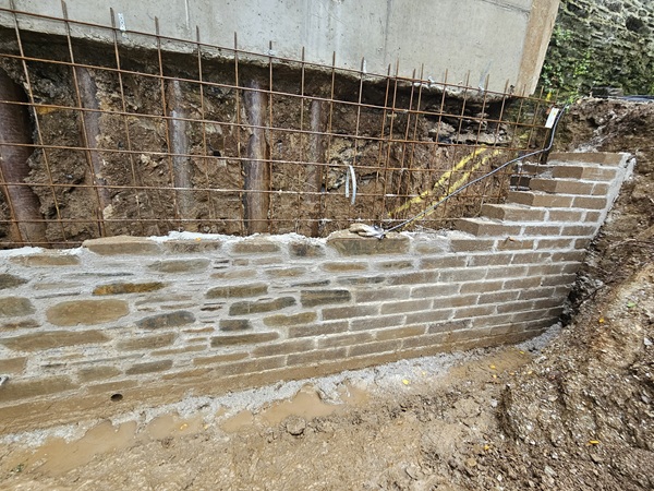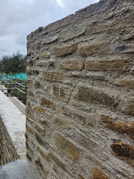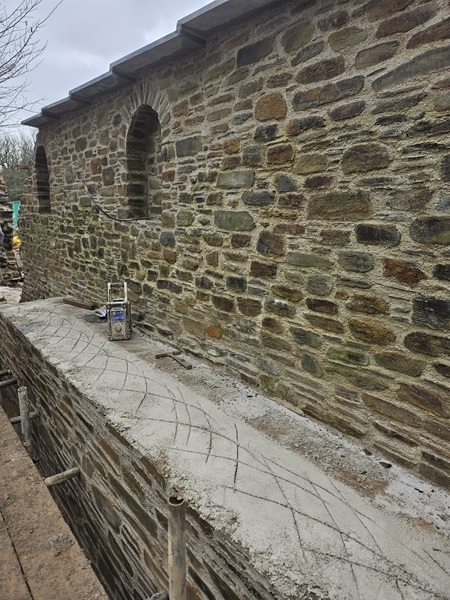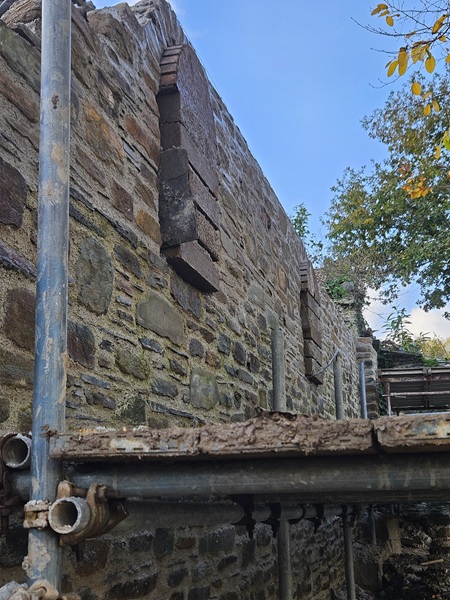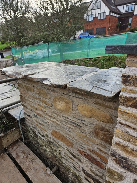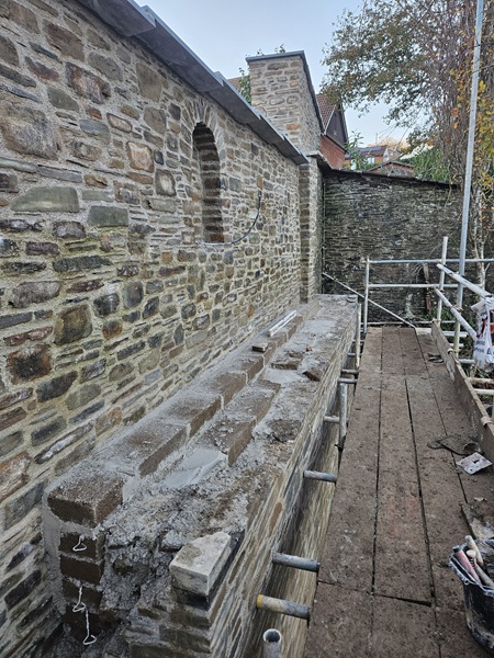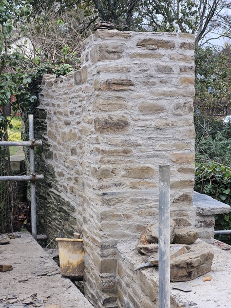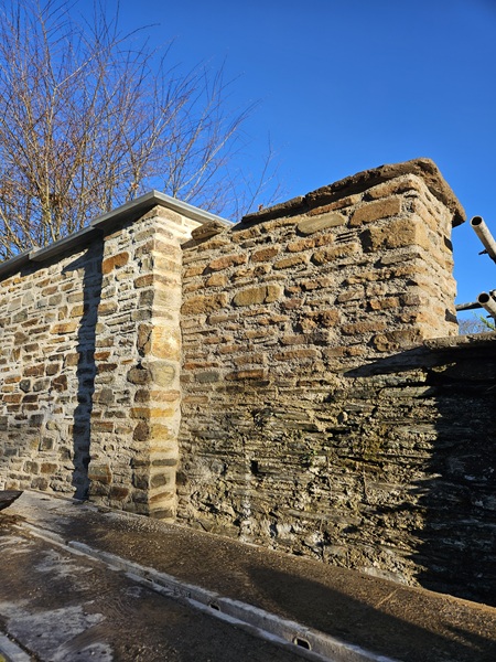 Another pier was built at this end of the wall where the new stonework was tying into the old and more of the Helical ties were built in as the wall went up.