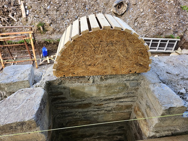 A wooden centring was made up to form the shape of the gothic arch and put in place.