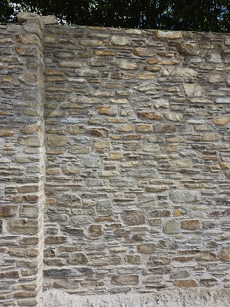 Walled gardens have been around since Medieval times and the high walls being a key feature. These high walls were constructed not so much for security reasons, although originally all gardens may have been enclosed for protection from animal or human intruders, but for horticultural purposes to offer shelter and an encouraging micro-climate for growing fruit, vegetables and flowers. In temperate climates the walls shelter the gardens from winds and frost and in doing so can raise the ambient temperature within the garden by several degrees, allowing this micro-climate to grow plants that would not otherwise survive in an unchanged local climate. One acre of a kitchen garden was expected to provide enough produce to feed twelve people. Now that the wall was completed we had a few small jobs to do before we were finished. One of those jobs was to extend a small section of wall at one end to give the client more privacy. Some stainless steel ties were fixed into the stonework.