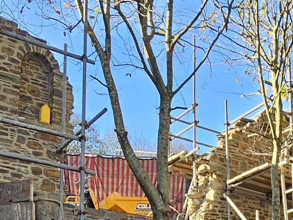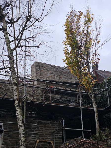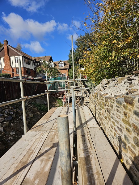 We got this end up as far as we could, but again scaffolding was required before we could go any higher. Throughout the course of the work we had to leave a gap in the wall. This was to enable access for us to get stone and mortar on the clients side in order to build it. The gap was also there to serve another purpose.