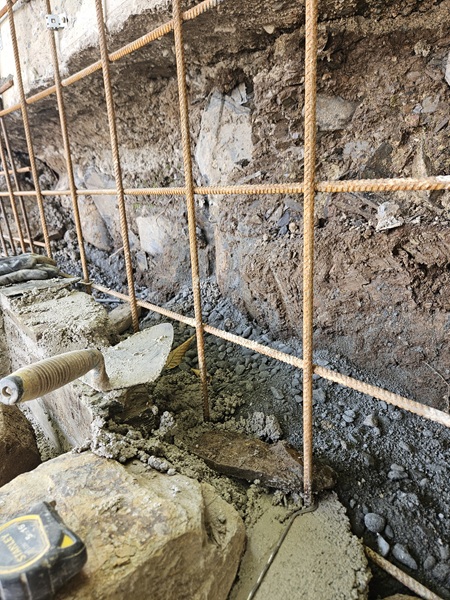 Then reinforcement mesh was fixed to the starter bars which was also fixed into the concrete foundation above.