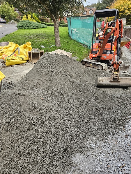 Once the wall was up to just underneath the foundation above, that was sat on the piling, another batch of semi-dry lean mix concrete was delivered to site for us to place in behind the wall.