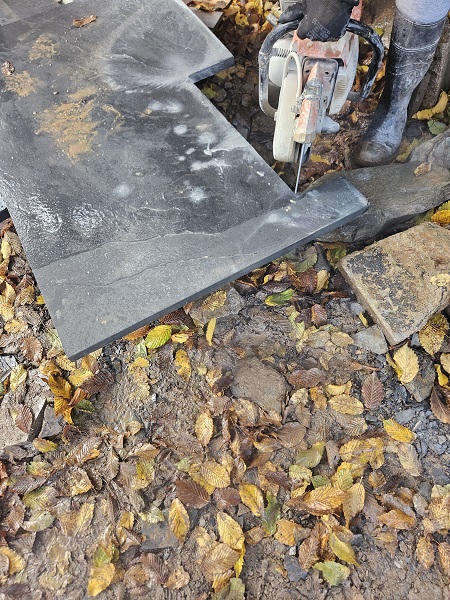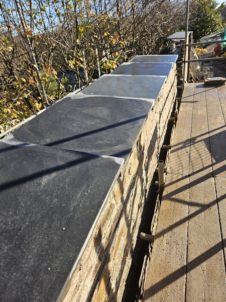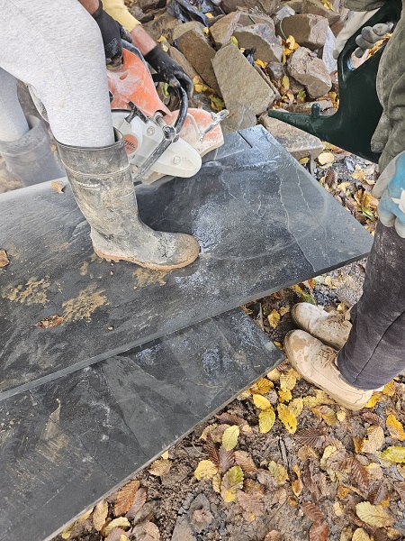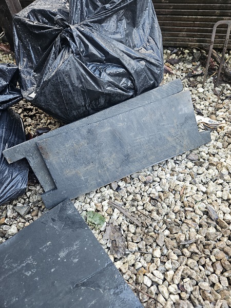 The copings that had once topped the wall on the section which collapsed had been completely trashed when it fell down. There was hardly any of it left and the pieces that were now lying around were certainly not fit for purpose. So it was decided that new slate was to be ordered and used to replace the old.