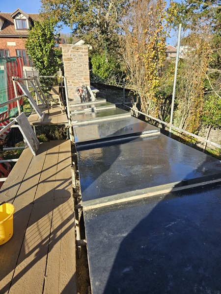 Which was finished off with a cross fall in preparation for the new slate copings.